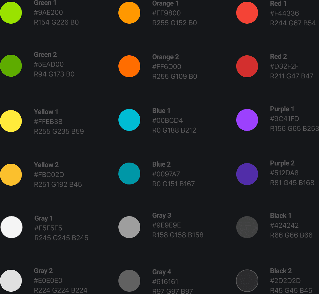 While consistent with the current brand color scheme, the modified color palette provides clear and intuitive communication. The palette begins with primary colors and continues with supporting colors, filling in the spectrum and creating a complete palette for cross platform usability.