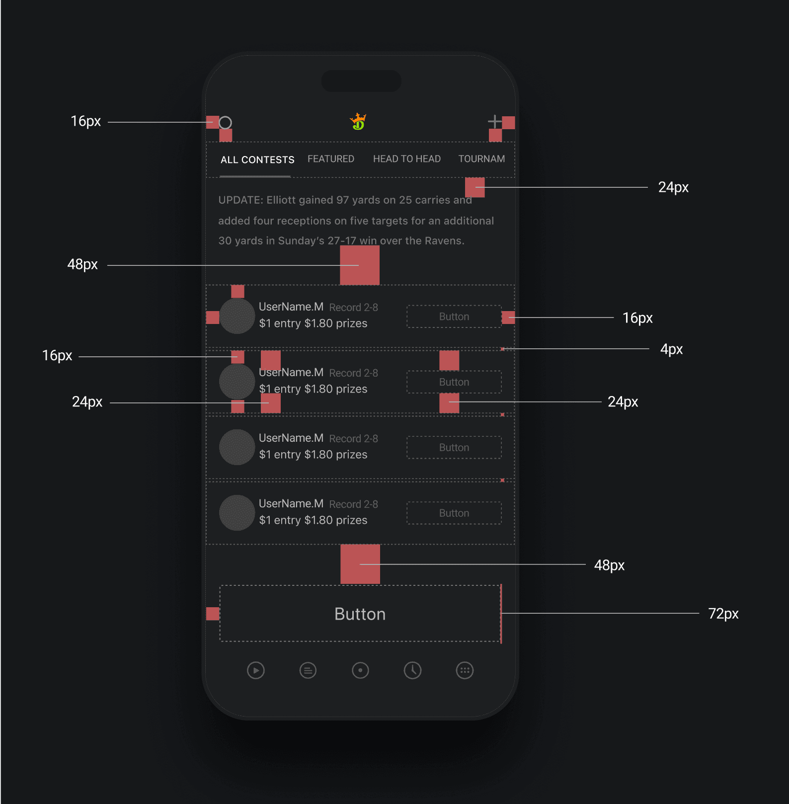 The new grid and spacing system provided clear design rules, which acted as the foundation for the new design. Following this system allowed Draftkings to: